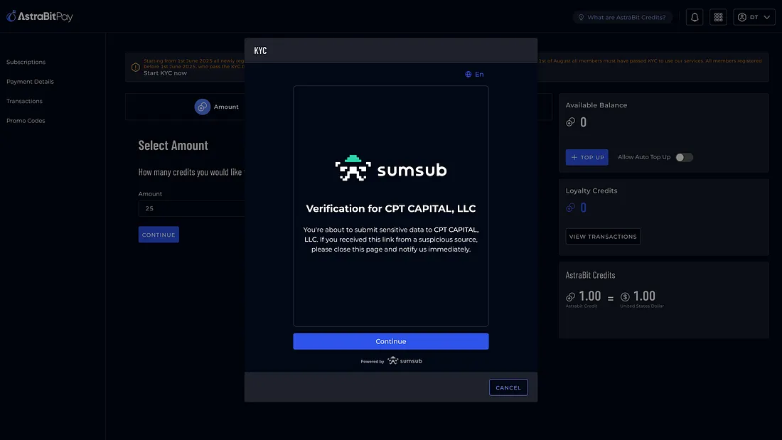 - We’re Aligning with U.S. Law — KYC helps us comply with the GENIUS Act and broader regulatory expectations, ensuring AstraBit remains a secure, future-ready platform.