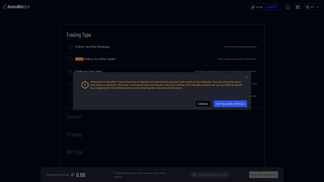 - We’re Not an Exchange — AstraBit is trading software. You choose the exchange. We provide the toolkit to automate and manage your strategies.